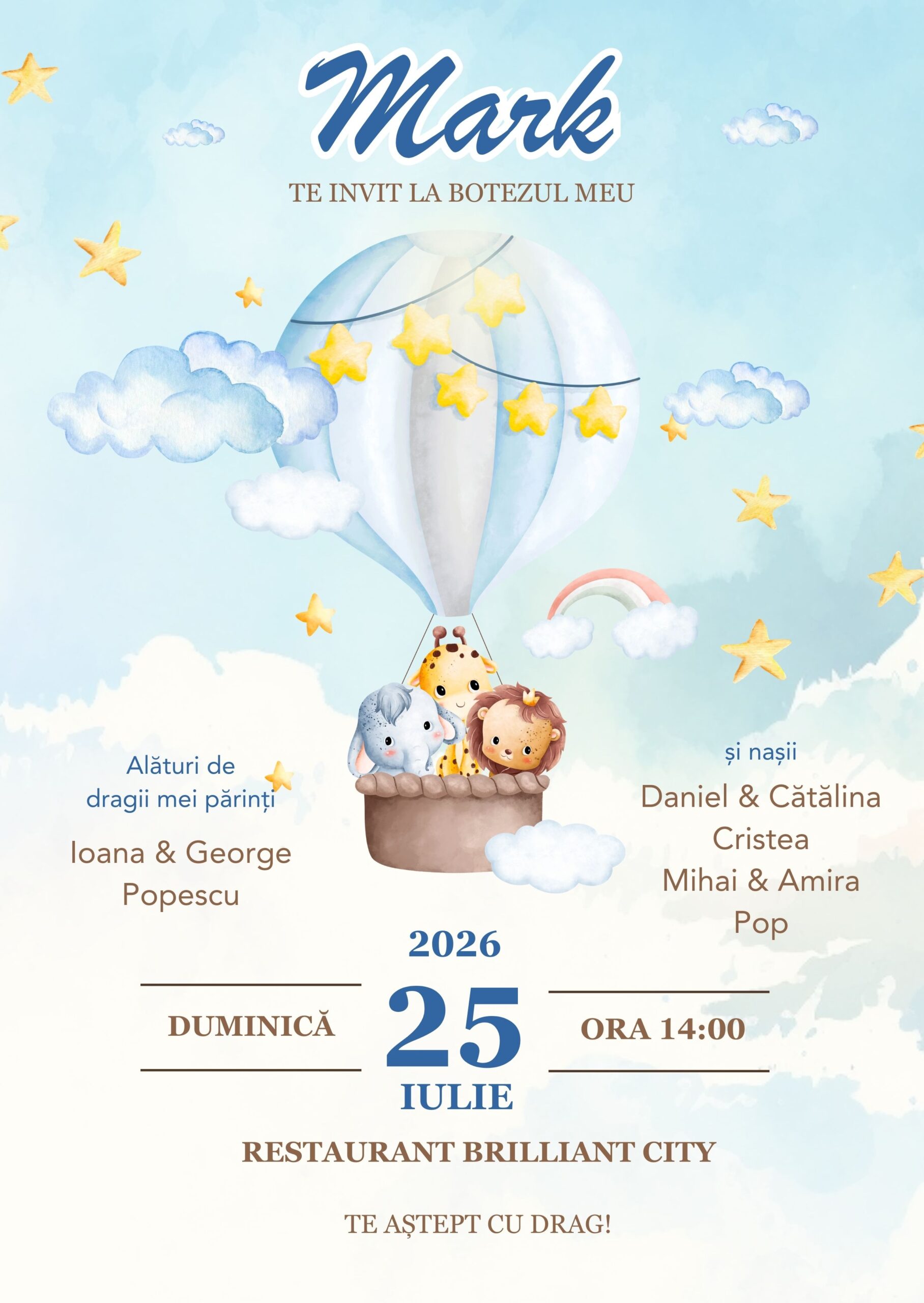 Invitația digitală de botez este o soluție modernă și practică, creată pentru a face acest moment special ușor de împărtășit cu cei dragi.